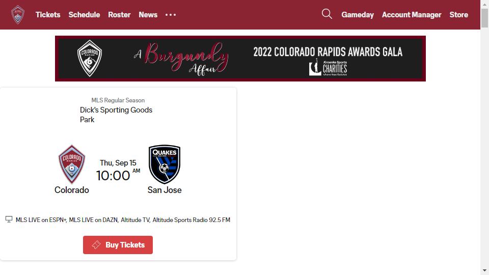 科羅拉多急流(Colorado Rapids)是西區球隊,成立於1996年,主場爲科羅拉多州商貿城Dick's Sporting Goods Park,可容納約18000名觀衆,球隊於2010年奪得季後賽冠軍。