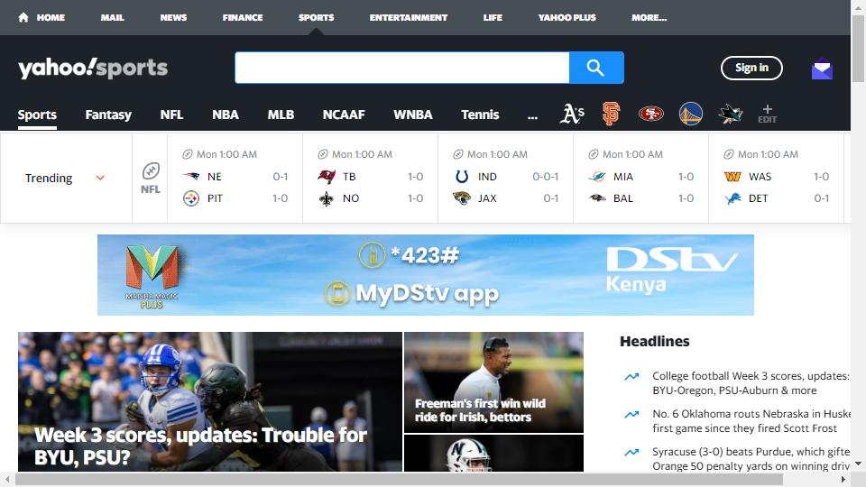雅虎體育頻道(Yahoo! Sports)是門戶巨頭的體育子頻道,主要提供全球各大體育賽事精彩視頻、體育新聞、博客、專家評論、精彩瞬間圖集等。