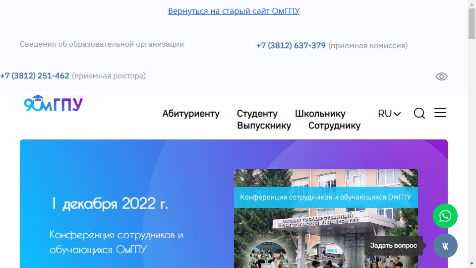 鄂木斯克國立師範大學於1932年創立,提供本科、研究生、副博士、博士等學位教育,主要專業有翻譯心理學的發展、社會教育、學心理諮詢教育、組織心理學教育、殘疾人康復教育、科學教育、環境、化學、生物等。