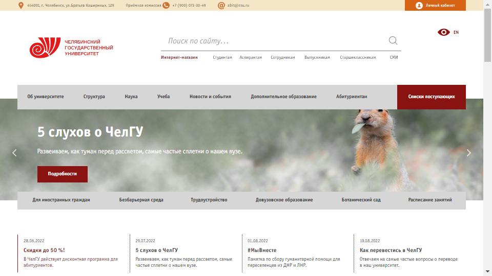 車里雅賓斯克國立大學(Челябинский государственный университет)俄羅斯首屈一指的教育、科研和文化機構,於1976年建立,提供學士、專家、碩士、副博士、博士專業課程,主要專業有計算機安全、無線電和電子、工藝和材料的物理化學、微生物學、教育學和心理學、國家和市政管理等。