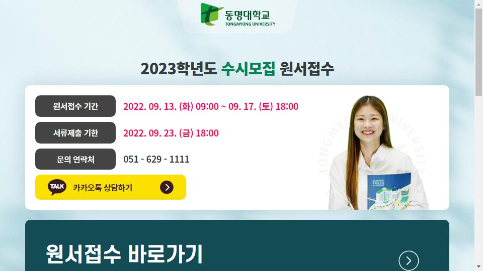 東明大學(Tongmyong University)韓國知名私立大學,於1979年創建,位於釜山,設有2個學院、4個単科大學和4個學部,提供4年制專業學科、碩士、博士課程,提供學費減免、入學獎金、專業獎金、政府特別獎金等。