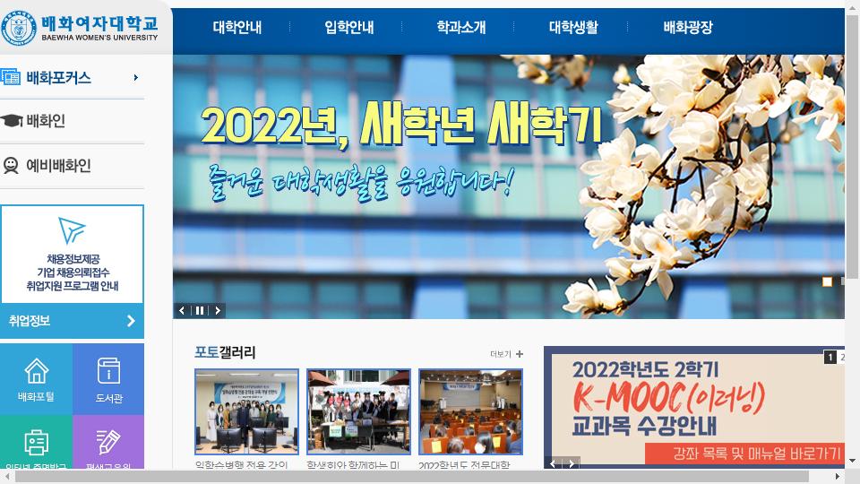 培花女子大學是1897年10月,以美國女傳教士Josephine女士的信任、希望、愛的基督教的精神爲建學理念,開設了專門培養女性人才的培花學堂。爲了成爲女性人才教育的名門大學,培花女子大學承接了傳統和現代的教學方法,成爲了具有女性人才培養最尖端的教育方法的大學。