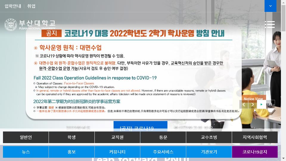 釜山大學,由韓國政府創辦於1946年,是韓國10所國立旗幟大學之一,位於韓國第二大城市釜山,是韓國第一國立大學(2011年3月,韓國國會通過法案,將首爾國立大學改爲法人私立的大學。)。2014年QS世界大學排名431名,亞洲第68位。 目前,學校由15個學院、1個分校區、1個綜合研究生院、4個專業研究生院、以及5個特殊研究生院組成。多年來,學校通過培養出優秀的人才和領導人爲國家發展做出貢獻。作爲韓國第一國立大學,與慶北國立大學一起捍衛着韓國高等教育國立大學的尊嚴。