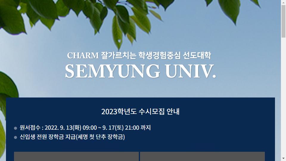 世明大學(Semyung University)韓國著名私立學院,於1991年創建,位於忠清北道堤川市,主要院系有工商管理、土木工程、建築工程、生物環境工程等。