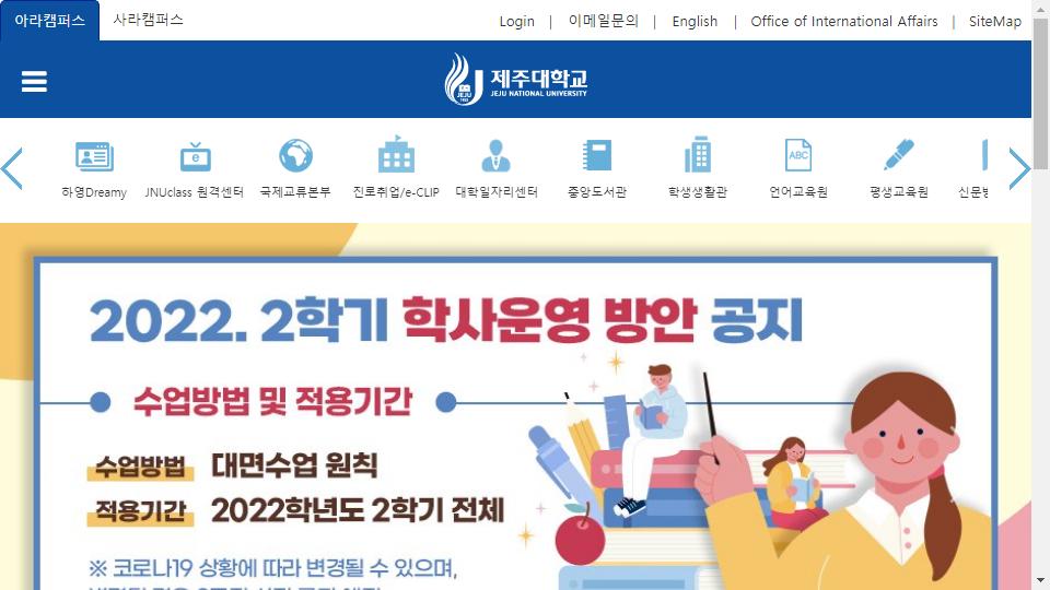 濟州大學是韓國的一所國立本科大學,成立於1952年。濟州大學開設了本科、碩士、博士課程,包括國語外語、社會學、哲學、計算機教育、植物資源環境、園藝環境、應用生命工學、分子生命工學、動物生命工學、產業應用經濟等專業。