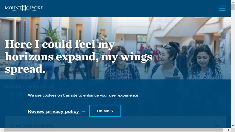 曼荷蓮女子文理學院(Mount Holyoke College;又譯:霍山學院)全美最早的女子高等學院,也是“七姐妹”聯盟的“老大姐”,是由瑪麗勞茵(Mary Lyon)於1837年創立的,位於麻省西部的小鎮South Hadley,以卓越的教學和學術著稱,在2015美國文理學院排行榜中位列第41。