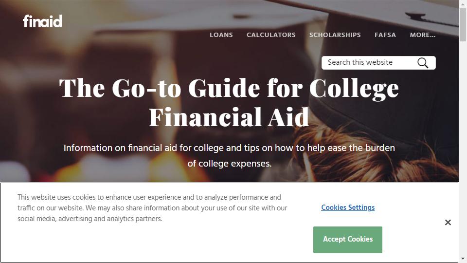 FinAid是美國一個專門爲學生提供教育財政援助信息的網站,於1994年創建,主要內容有獎學金、教育貸款、教育儲蓄、軍事援助、財政援助等各種類型的援助。FinAid憑藉學生們的肯定和讚譽,獲得了國家學生財政資助管理者協會理事會授予的榮譽獎。