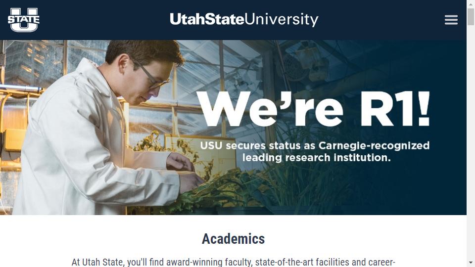 猶他州立大學(Utah State University),簡稱USU。建立於1888年,位於美國猶他州的羅崗市(Logan),距猶他州的首府鹽湖城80英里。她從當初一個小的農學院發展至今,憑藉着在工學方面的成就,成爲美國乃至國際著名的大學。在美國的工學前100名中,猶他州立大學赫赫有名。目前,在校長斯坦阿爾布雷克特的領導下,擁有850名教職工和23000名本科和研究生。提供本科、碩士、博士、副學士(Associate)、文憑課程(Certificate)五種學位類型。