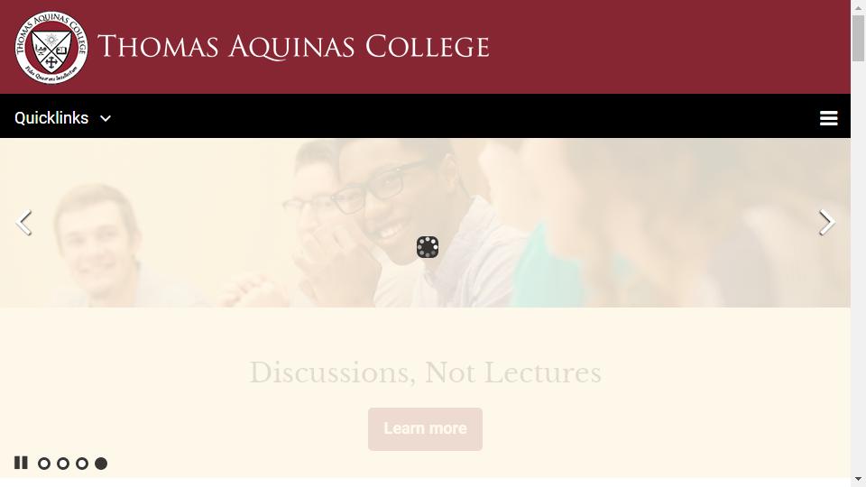 托馬斯阿奎那斯學院(Thomas Aquinas College)美國著名的教會文理學院,於1969年建校,位於洛杉磯西北約65英里的聖保拉市,錄取率較高,爲79%,採用獨特的自由式教育——無教材、無講座,所有班級都是會話式的。該學院該學院在2015年美國文理學院排行榜中位列第77名。