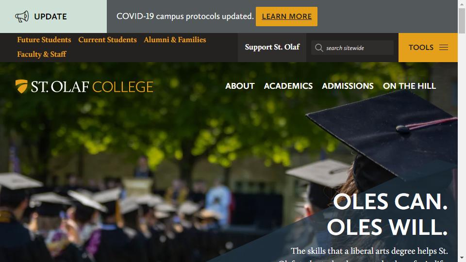 聖奧雷夫學院(St. Olaf College)美國知名文理學院,於1874年建校,位於明尼蘇達州東南部的諾斯菲爾德,距離明尼阿波利斯國際機場45分鐘車程,以音樂專業著稱,以藝術、數學、自然科學等專業見長。該學院在2015年美國文理學院排行榜中位列第54。