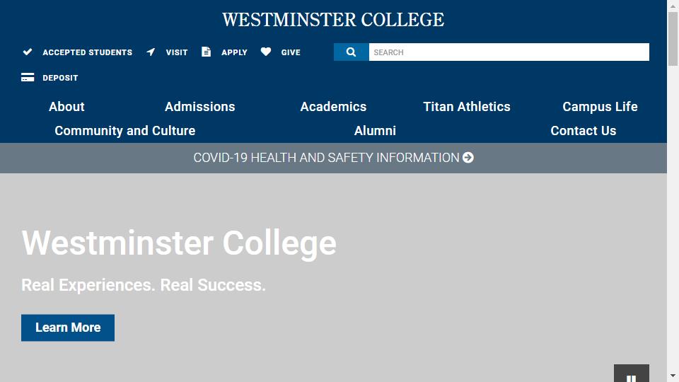 威斯特敏斯特學院(Westminster College)猶他州唯一由國家認可的綜合型私立文理大學,於1875年建校,擁有獨特優越的學習和實踐環境,以計算機、商學、教育學見長,師生比例爲1:10。該學院在2015年美國文理學院排行榜中位列第116名。