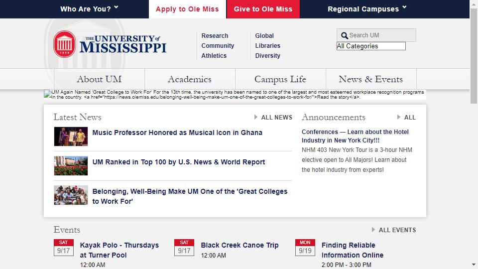 密西西比大學(University of Mississippi)是美國的一所公立研究型大學,創建於1848年,位於密西西比州牛津市,是該州最大的大學之一。在2016年U.S.News美國綜合大學排名中,密西西比大學排在第140位。