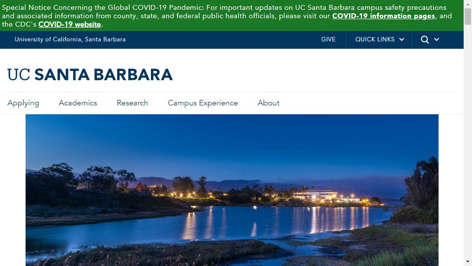 加州大學聖塔芭芭拉分校(University of California-Santa Barbara,UCSB)是美國的一所公立綜合型大學,是加利福尼亞大學系統成員。學校創辦於1909年,位於加州聖塔芭芭拉,校園兩面環海,環境優美。學校在性別學、材料工程、化學工程等領域處於領先地位。在2014年美國大學綜合排名中,與、、、、並列第41位。