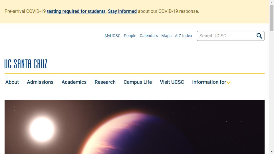 加利福尼亞大學聖克魯茲分校(University of California Santa Cruz)是美國的一所綜合性公立大學,創辦於1965年,位於加州聖克魯茲(Santa Cruz, CA)。學校創辦以來發展迅速,在國際金融、地球科學等領域的研究處於全球領先水平。在2014年美國大學綜合排名中,與、、、並列排在第86位。