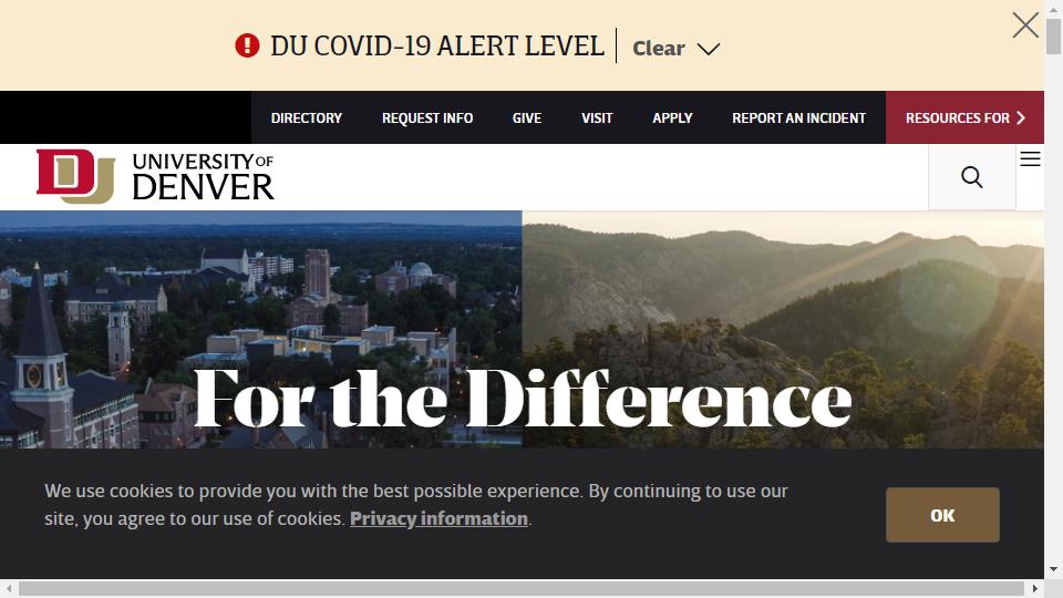 丹佛大學(University of Denver)是美國的一所綜合性私立大學,創辦於1864年,位於科羅拉多州首府丹佛市(Denver, CO),有10000多名在校學生。丹佛大學開設有國際學院、丹尼爾商學院、拉蒙特音樂學院等學院,同時,丹佛大學在體育運動方面也有很強的實力。在2014年美國大學綜合排名中,與、、、、並列排在第91位。