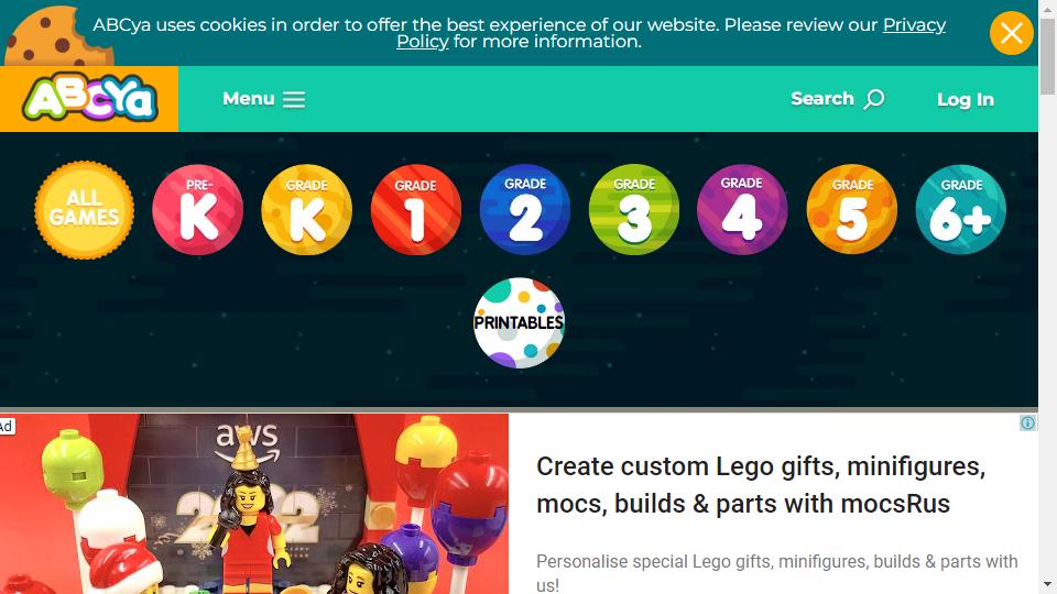 ABCya是一個集遊戲和教育爲一體的兒童網站,主要爲兒童和小學生們提供計算機遊戲和在線學習平臺。ABCya的獲獎遊戲和程序刊登在蘋果、《紐約時報》和迪士尼家族娛樂等雜誌上。
