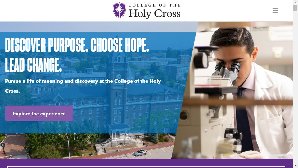 聖十字學院(College of the Holy Cross)美國著名的文理學院,是愛國者聯盟院校之一,於1843年11月2日建校,位於馬薩儲塞州的伍斯特,國際生佔比爲23%,不設獎學金。聖十字學院在2015年美國文理學院排名34。
