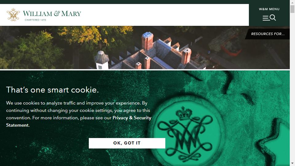 威廉瑪麗學院(College of William & Mary)創辦於1693年,是創辦時間僅次於的美國第二所大學,培養了衆多影響美國的人物,包括美國國父喬治·華盛頓,《獨立宣言》起草人、美國第三任總統托馬斯·傑斐遜、麻省理工學院創始人威廉·巴頓·羅傑斯(未取得學位)等。在2014年USNEWS美國大學綜合排名中,與、、並列排在第32位。