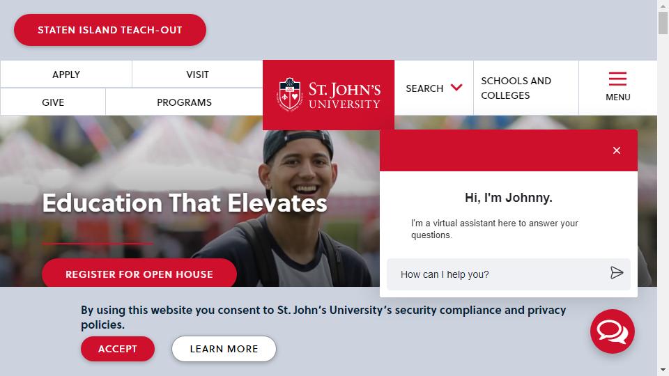 聖約翰大學(St. John's University)美國最大的天主教會大學,其前身爲1870年Vicentian Society修會在紐約州皇后縣創立的學院和1872年聚會使團(Congregation of the Mission)成立的聖約翰文學聯盟(St. John's Union),共有六個校區,分別爲紐約皇后校區(主校區)、Staten Island校區、曼哈頓校區、Oakdale校區、羅馬校區(位於意大利)、巴黎校區(位於法國)。