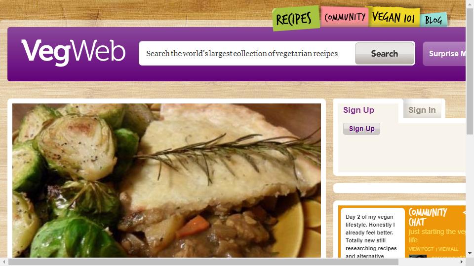 素食網站(VegWeb)是美國一個專門針對素食主義者的論壇,主要討論、交流和學習素食菜譜,內容包括食譜、論壇、文章、優惠券、相關鏈接、新聞等。用戶只需註冊即可獲取每週關於素食美食的訂閱新聞。