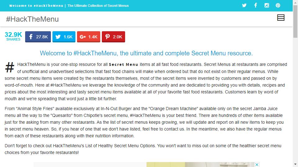 HackTheMenu:一站式祕密快餐菜單網是一個集合了美國快餐連鎖店菜譜的站點,使用該網站你可以查詢到美國所有的快餐連鎖店的菜單,支持訂購,祕密菜單是由餐廳自行創建的,可以說是每個快餐店的招牌菜。