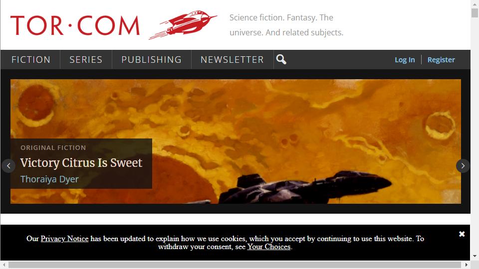 Tor.com是科幻愛好者聚集的地方,網站發佈最新的科幻書籍、電影、遊戲等信息,這裏有最優秀的科幻作者,他們寫了大量優秀的短篇科幻小說,在這裏科幻愛好者可以自由的交流、討論。