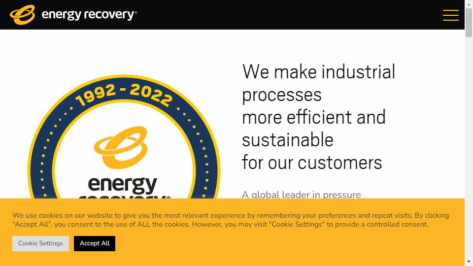 Energy Recovery是美國的一家能源回收設備製造商,成立於1992年,總部位於加州San Leandro,主要爲全球工業流體流動市場提供能源解決方案。