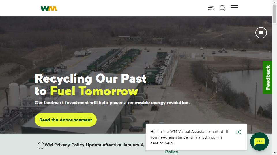廢物管理公司(Waste Management;簡稱:WM)北美最大的廢品綜合處理公司,於1968年創立;1971年在上市,總部設在德克薩斯州休斯頓。截止2013年,WM擁有390個回收點、310座轉運站、267座垃圾填埋廠、17座垃圾電廠、120座資源化回收工廠、137個填埋氣項目和36套有機加工設施,爲北美近2,100萬名客戶提供環境保護服務。
