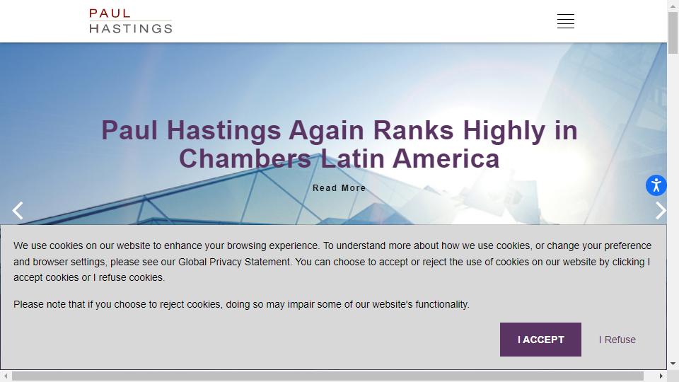 普衡律師事務所(Paul Hastings)是一家國際性律師事務所,創建於1951年,總部設於美國洛杉磯,在北京、上海、香港、倫敦、巴黎等地設有20多個辦事處。