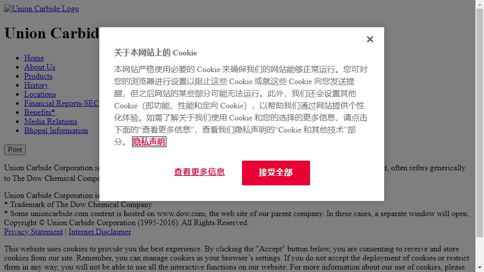 美國聯合碳化物公司(Union Carbide)是美國的一化工企業,創辦於1898年,總部位於休斯頓。聯合碳化物公司於1917年取得乙烯製造的專利後逐漸興起並在全球擴張,1984年印度博帕爾事件使聯合碳化物公司收到打擊,2001年被收購。
