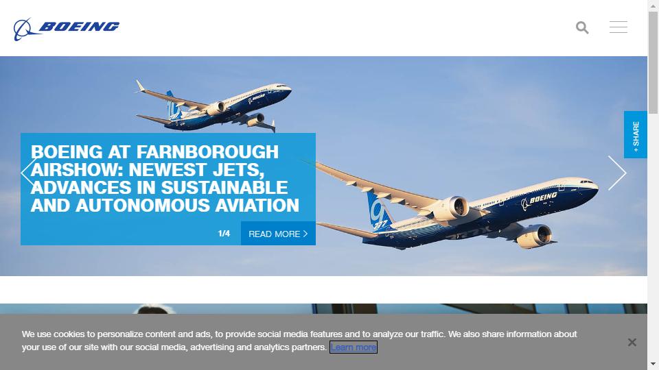 波音公司(The Boeing Company;:BA;TYO:7661)是全球最大的民用和軍用飛機製造商,是航天航空界的領軍企業,也是的主要提供商,於1916年7月15日創建,後於1917年5月9日更名爲“波音”,總部設在芝加哥。波音公司主營飛機制造、軍火製造和空間開發,旗下的主業務部門有波音民用飛機集團、波音防務、空間與安全集團。2013年,在世界500強企業中位居第95位。