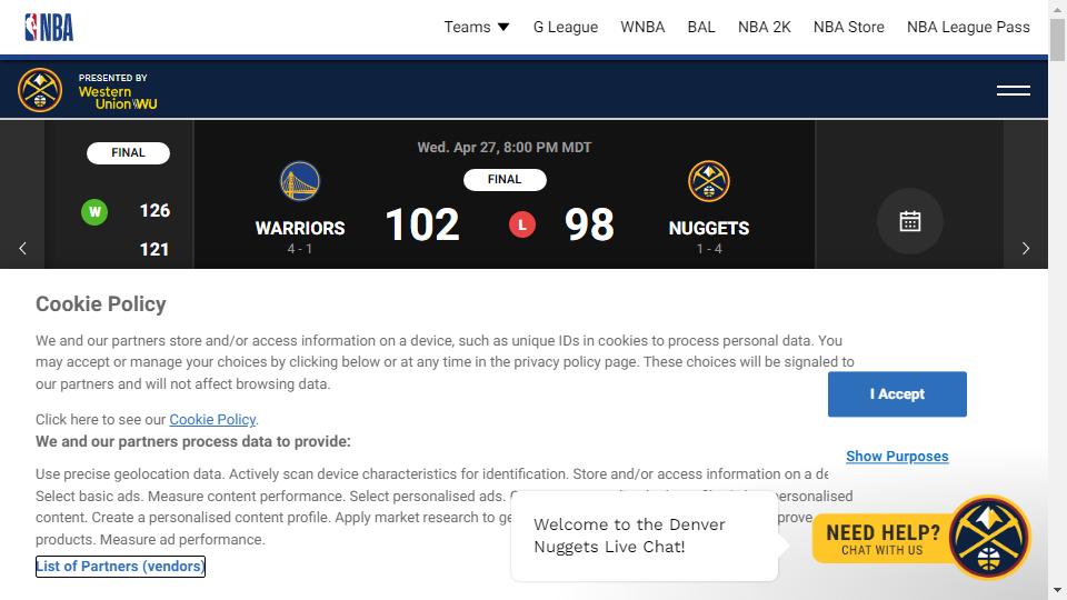 丹佛掘金隊(Denver Nuggets)是位於科羅拉多首府丹佛的一支球隊,隸屬於西北聯盟西北賽區,主場爲百事中心。成立於1967年,原名丹佛火箭,後改名丹佛掘金,1976年加入NBA。掘金歷史上獲得過6次分區冠軍。