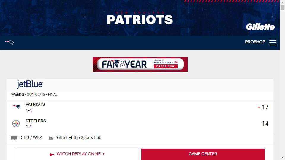 新英格蘭愛國者(New England Patriots)是位於麻省福克斯堡的一支球隊,隸屬於美聯(AFC)東區。球隊成立於1960年,主場爲吉利體育場。新英格蘭愛國者歷史上曾贏得3次超級碗,7次AFC冠軍,14次AFC東區冠軍。