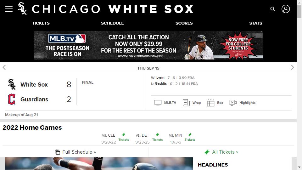 芝加哥白襪(Chicago White Sox)是美國職業棒球大聯盟中的球隊,隸屬於美聯中區,主場爲芝加哥美國行動通訊球場。1919年世界大賽,白襪隊發生了歷史上著名的“黑襪事件”,讓白襪隊在此後的漫長的時間裏都沒拿到過世界大賽冠軍,直到2005年白襪戰勝休斯敦太空人隊,時隔88年纔再次奪得總冠軍。