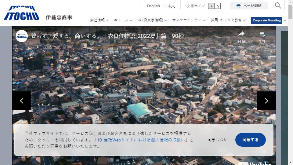 日本伊藤忠商事株式會社(ITOCHU Corporation)是日本最大的綜合貿易公司之一,成立於1949年,總部位於東京。伊藤忠商社業務涉及石化、金屬、食品、物流等。在2013年世界500強排名中,伊藤忠商事株式會社排在第174位。