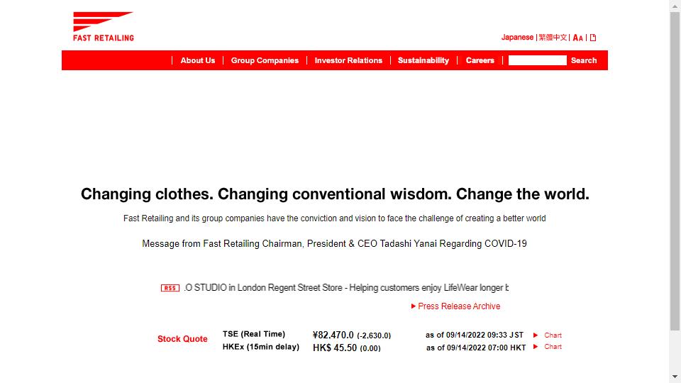 迅銷集團(Fast Retailing Co., Ltd.;日文:ファーストリテイリング)日本著名的零售控股公司,源於1949年創立的“小郡商事”;後於1963年5月,正式成立“小郡商事株式會社”;1984年6月,設立了的前身——“Unique Clothing Warehouse”;1991年,更爲現名。其中,優衣庫爲迅銷集團旗下的核心品牌。